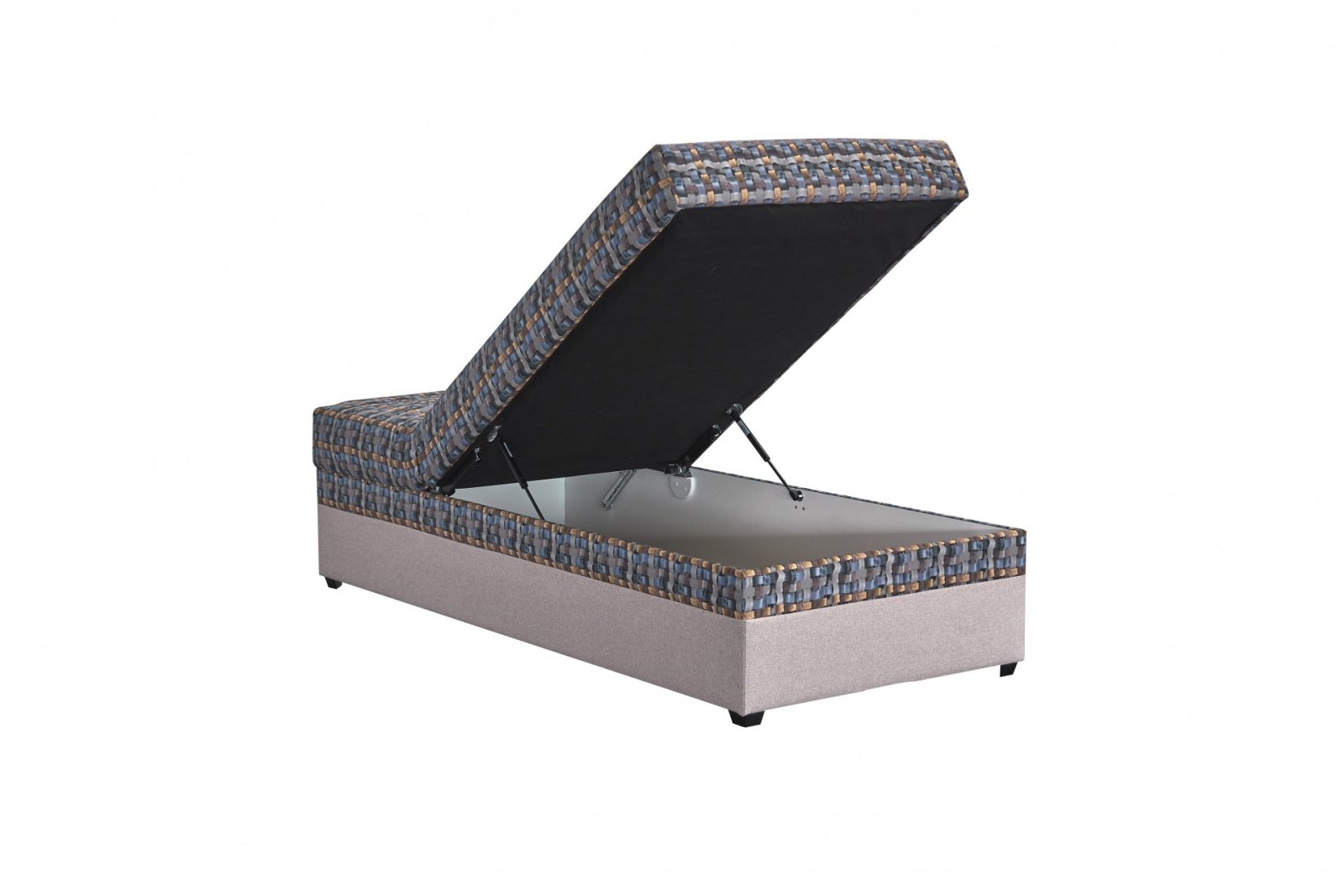 Úložný prostor lůžka se otevírá od nohou postele.