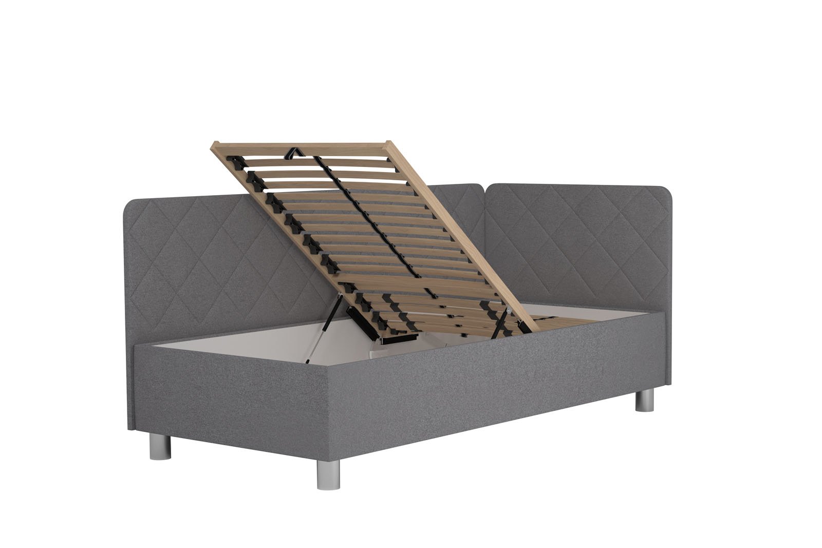 Úložný prostor lůžka se otevírá za pomoci plynových pístů od nohou postele.