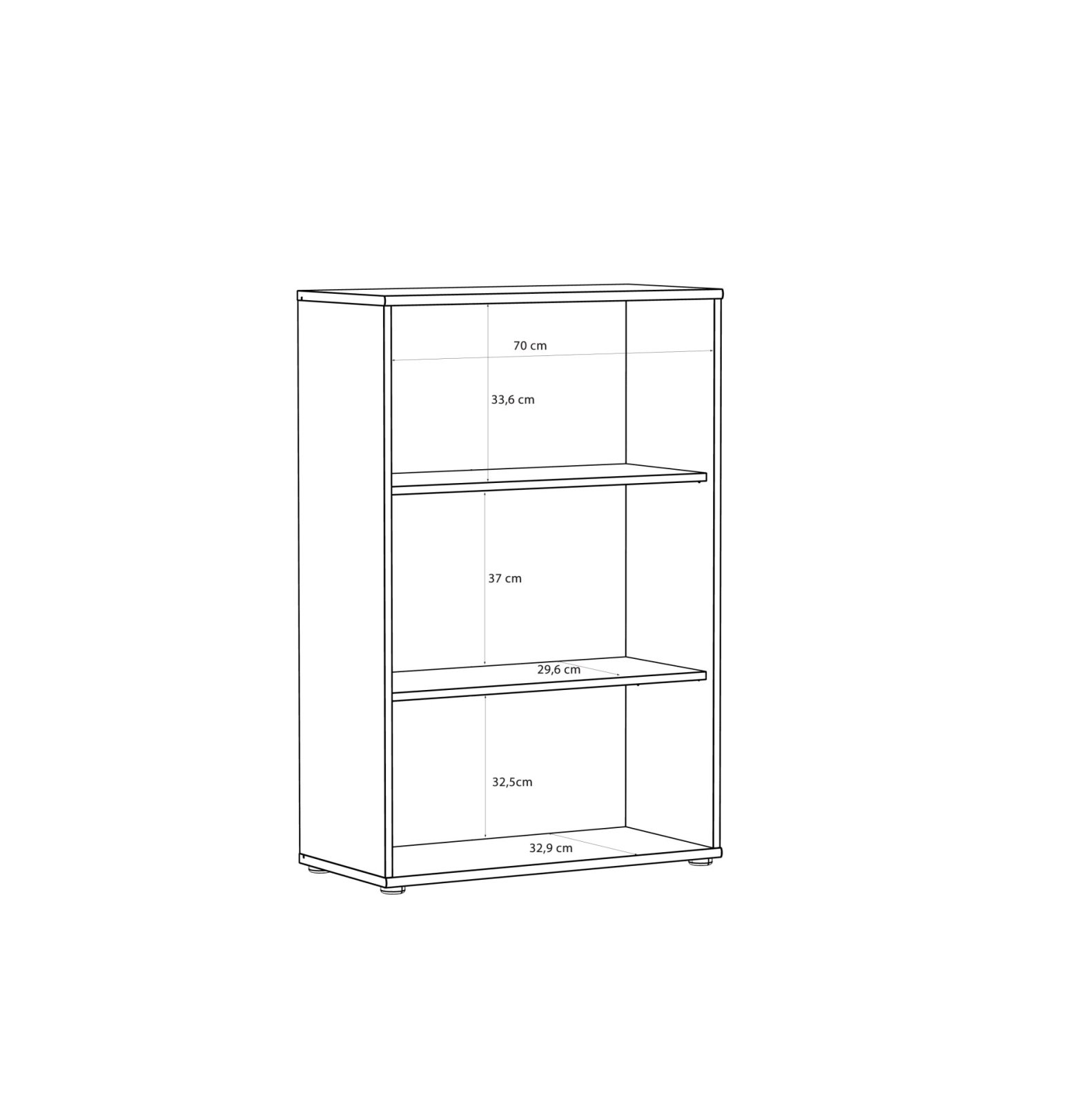 Otevřený úložný prostor je rozdělen pomocí pevných polic, které umožňují přehledné uspořádání všech uložených věcí. Knihovna tak nabízí funkční a zároveň vzdušné řešení úložného prostoru.
