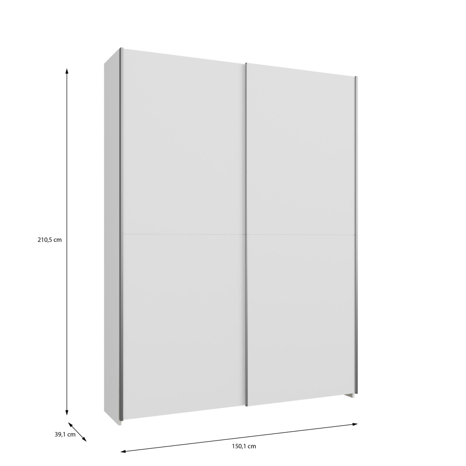 Díky šířce přibližně 150 cm nabízí skříň dostatek prostoru i pro vícečlennou domácnost. Zároveň má menší hloubku 39 cm, takže je vhodná i do užších místností nebo menších bytů, kde pomáhá šetřit místo.