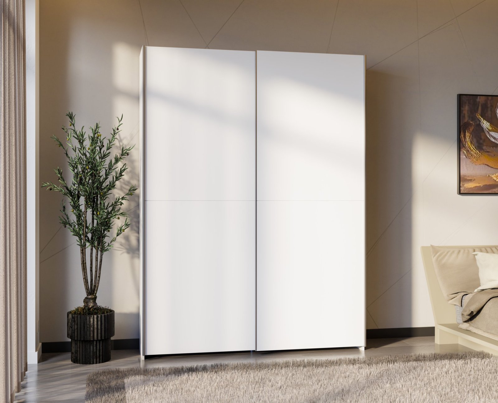 Prostorná šatní skříň Snore v bílé barvě, ideální pro vaše