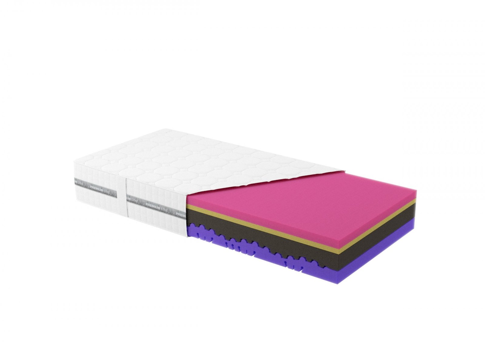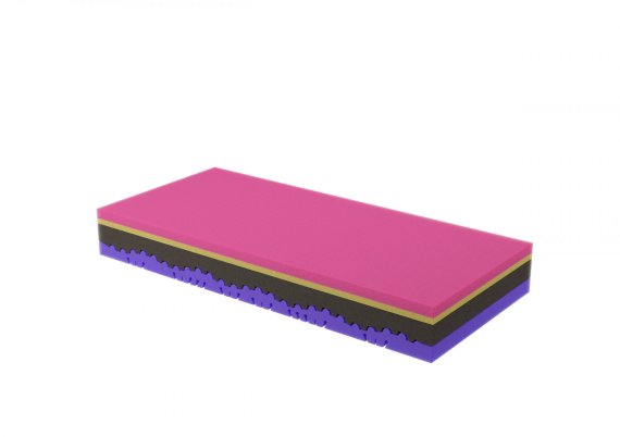 První, růžovo-fialová, vrstva matrace je vyrobena z inovativního, velmi měkkého a jemného materiálu Mousse au Neropur, který ale díky svým elastickým vlastnostem poskytuje vašemu tělu dokonalou oporu.